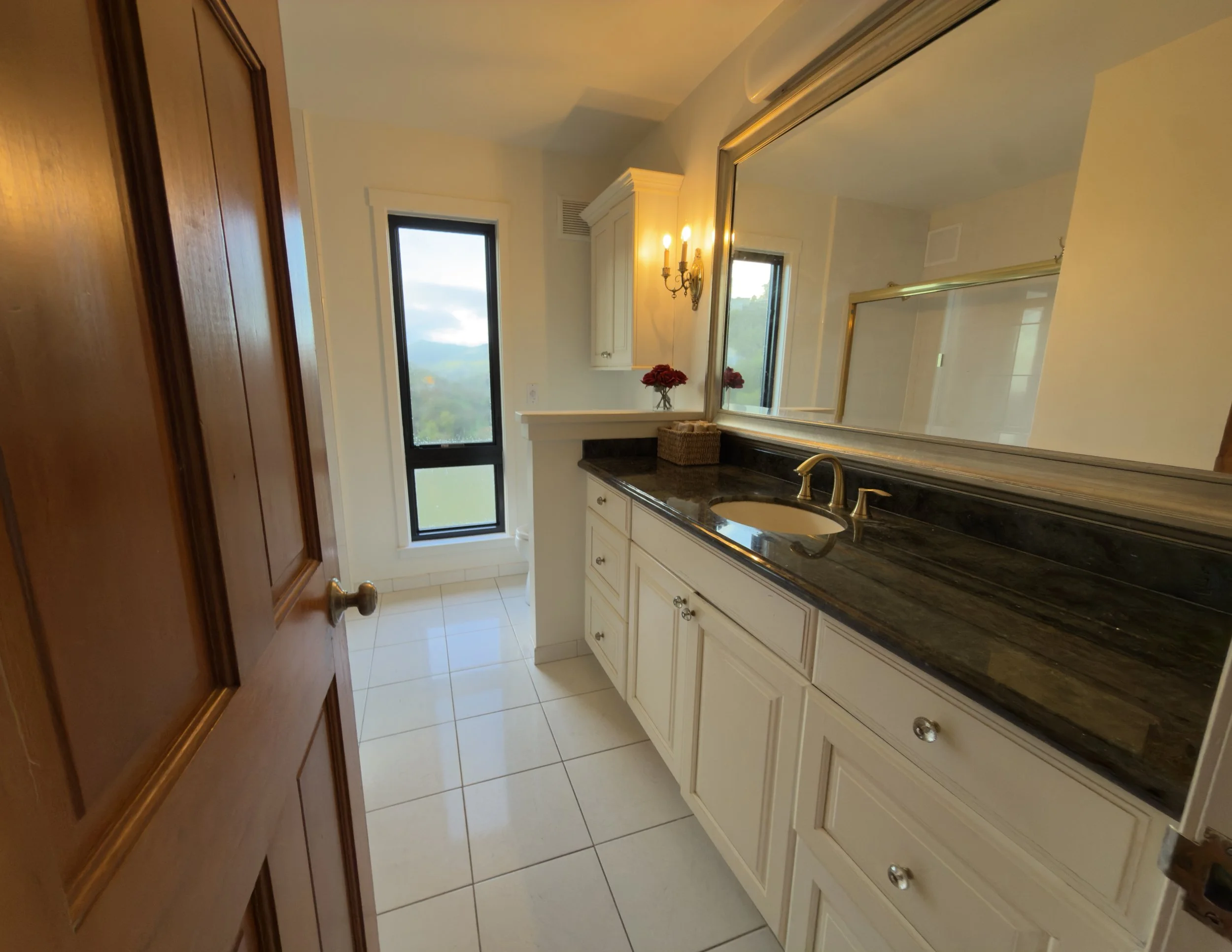 Master private bathroom features large shower tub (with view!). Towels, soap, and hairdryer supplied.