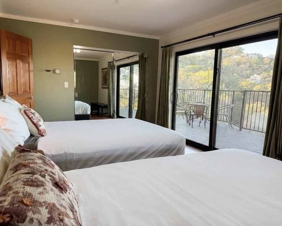 The “Double Room” features 2 full beds, sleeping 4. Deck access. Views!